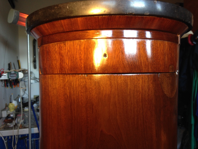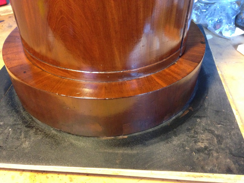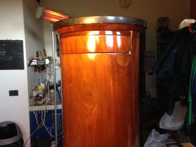 Mobile di inizio '800. Francia Comodino a tamburo, retto dabasamento presenta un cassetto e un'anta. Piano tondo in marmo nero.
